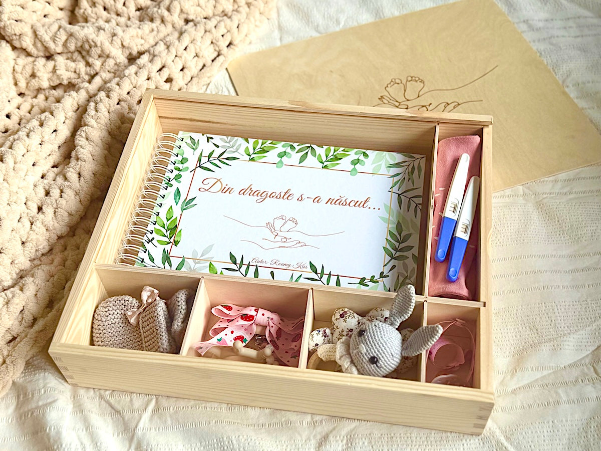 O cutie mare din lemn de mesteacăn pentru cele mai prețioase amintiri din sarcină și copilărie.